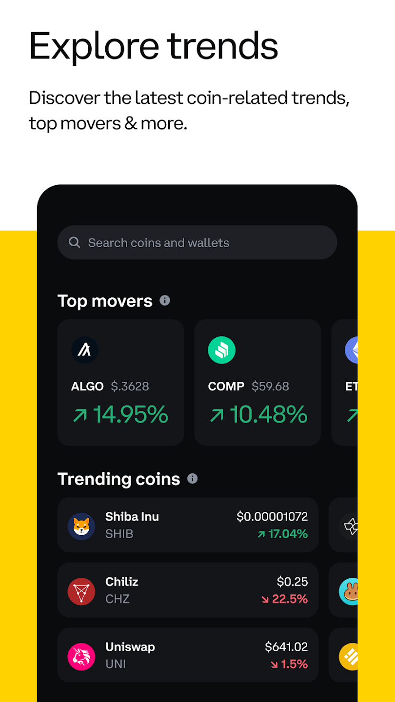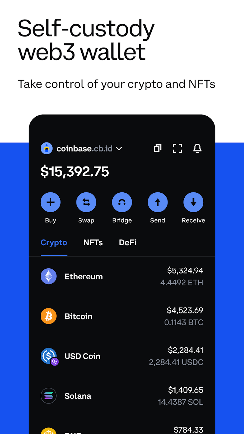 کیف پول کوین بیس دارای نسخه های اندروید، iOS و افزونه مرورگر است. برای استفاده از Coinbase Wallet نیازی به داشتن اکانت در صرافی کوین بیس نیست.