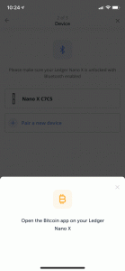حال که لجر نانو ایکس (Ledger Nano X) و گوشی به هم متصل شده اند، نام این کیف پول را از فهرست انتخاب کنید.